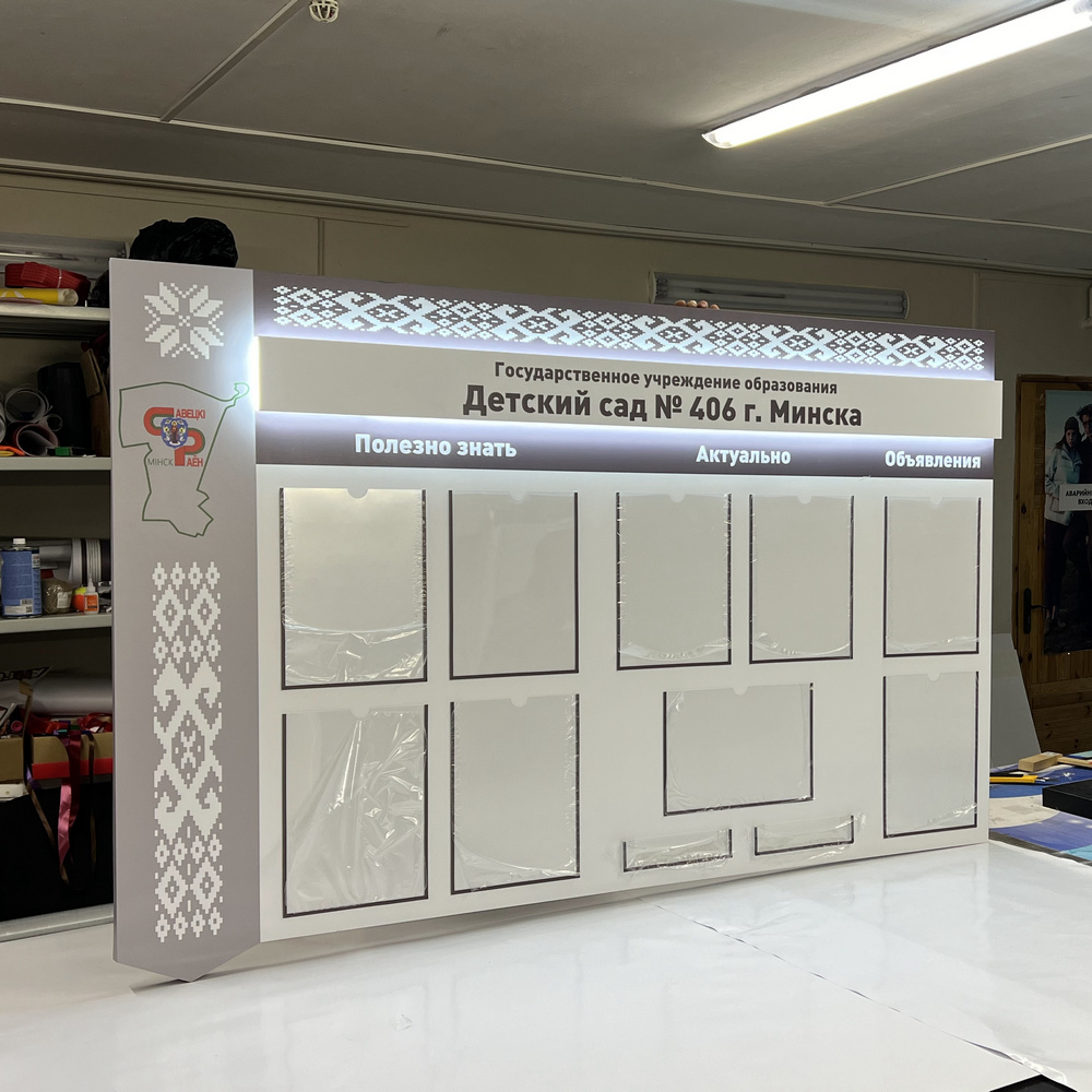 В фазе производства панели формируются через резку и сборку, с использованием технологий печати для нанесения базовых элементов, таких как разделители или логотипы, после чего добавляются крепежи для фиксации напечатанных материалов. Модульность играет ключевую роль, позволяя стендам расширяться или адаптироваться к изменяющимся нуждам, с элементами подвески или складывания для компактного хранения. Монтаж проводится с тщательным учетом окружающей среды, где стенды крепятся к стенам или устанавливаются на подставках, гарантируя устойчивость и доступность для людей с различными физическими возможностями. Завершающий этап включает тестирование на нагрузку и удобство, чтобы контент оставался свежим и привлекательным.